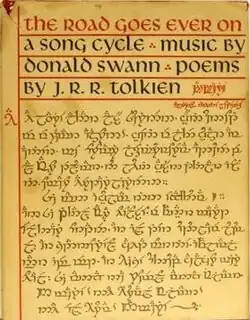 The Road Goes Ever On is a song cycle first published in 1967 as a book of sheet music and as an audio recording. The music was written by the entertainer Donald Swann, and the words are taken from poems in J. R. R. Tolkien's Middle-earth writings, especially The Lord of the Rings. The title of the song cycle is taken from "The Road Goes Ever On", the first song in the collection. The songs are designed to fit together when played in sequence. The ninth song "Lúthien Tinúviel" was added in an appendix rather than in the main sequence. Swann performed the cycle for Tolkien, who approved of the music except for the Quenya song "Namárië"; he suggested it should be in the style of a Gregorian chant, which he hummed; Swann used that melody for the song.