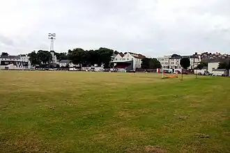 Greyhound racing took place around the pitch following the construction of a track in 1987.[2] Race night was a Thursday evening and race distances consisted of 420 and 700 metres. It was an all-grass surface with an 'Outside Sumner' hare system. There were kennels for 30 greyhounds and a totalisator on site and the track circumference was 370 metres, which was described as having tight bends. The venture was short-lived, with the racing ending in 1988.[3] The greyhound racing was independent (not affiliated with the sports governing body the National Greyhound Racing Club). It was known as a flapping track, which was the nickname for independent tracks.