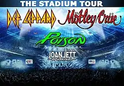 The Stadium Tour was a co-headlining concert tour by English rock band Def Leppard and American rock band Mötley Crüe, taking place in the summer and fall of 2022 in venues across North America. Poison and Joan Jett & the Blackhearts served as the tour's special guests, while Classless Act was the opening band.[1][2] It was Mötley Crüe's first major tour in seven years (following their final world tour in 2014–2015), and Def Leppard's first in three years, with the latter touring in support of their twelfth studio album Diamond Star Halos.[3][4]