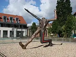 The Step of the Century (in German: Jahrhundertschritt) is a bronze sculpture that was created by Wolfgang Mattheuer in 1984. It is considered one of the most important works of art in the GDR at the time of the division of Germany and is a parable of the turmoil of the 20th century.