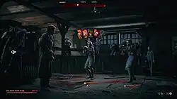 The game takes place in chapters, during which the player can an explore an area, interacting with NPCs, engaging in combat and completing quests.[5] The player can engage human foes and supernatural ones in turn-based combat, where they are able to use the abilities of ghostly salutors to win brawls. Each salutor represents a human flaw, Recklessness can break enemies' focus, but at added risk to the player, while Pride does damage to foes and heals Wiktor simultaneously.[6]