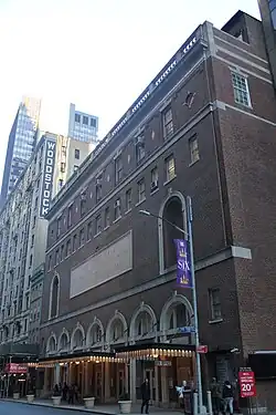 The Town Hall Club was established within the two top stories in January 1925, with a thousand members.[89] The club, which accepted both men and women, aimed to promote "a finer public spirit and a better social order".[56] Town Hall acquired a property at 125 West 43rd Street in May 1930,[90] and architect Louis Jallade filed plans to expand the original structure by five stories, as well as develop a twelve-story wing at number 125.[91][92] This addition was never completed, and Town Hall instead expanded its offices into the existing four-story building at 125 West 43rd Street.[71] Eventually, Town Hall, alongside Carnegie Hall and the old Metropolitan Opera House at 39th Street, became one of New York City's top musical venues in its 20th-century heyday.[93] The neighboring Aeolian Hall closed not long after Town Hall opened.[31]
