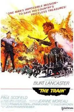 The Train is a 1964 action war film directed by John Frankenheimer[1] and starring Burt Lancaster, Paul Scofield and Jeanne Moreau. The picture's screenplay—written by Franklin Coen, Frank Davis, and Walter Bernstein—is loosely based on the non-fiction book Le front de l'art by Rose Valland, who documented the works of art placed in storage that had been looted by Nazi Germany from museums and private art collections. Arthur Penn was The Train's original director but was replaced by Frankenheimer three days after filming had begun.