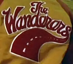 The Wanderers was filmed in 1979 by Philip Kaufman. The first Avon Books printing from February 1975 refers to the upcoming movie ("SOON A MAJOR MOTION PICTURE").[10] The artwork of the title on the front cover of the same book may have been the inspiration for the 'Wanderers logo' on the back of the uniform jackets in the film.