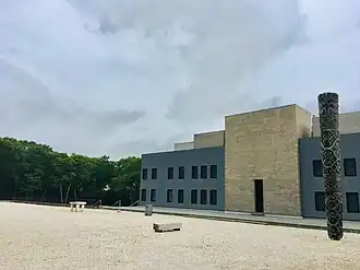 The Watermill Center is situated on a 10-acre campus consisting of gardens, natural environments, and permanent installations of wooden sculptures and megalithic stones from Indonesia.[4]