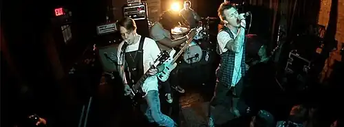 The White Noise were a punk rock band.[20][21] Specifically, they played styles such as post-hardcore,[22][23][21] melodic hardcore[22][24] and hardcore punk.[21] Some of their songs include elements of industrial and ambient music, leading to the categorizations of industrial punk and ambient hardcore.[4] Their music made use of detuned guitars, elements of noise music and contrasting screamed and sung vocals.[23] Cryptic Rock writer Jeanie Blue described them as blending "the intensity of Hardcore Punk with something that leans more heavily toward Metalcore [sic], and create a sound that is truly unique and full of blistering honesty".[25]