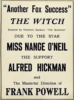 16. ^ "'The Witch' Based on Sardou's 'Sorceress', Is Next Fox Medium for Nance O'Neil", Motion Picture News, July 31, 1915, p. 68. Internet Archive. Retrieved January 4, 2020.