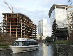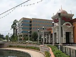 The Woodlands is organized into eight villages, which are subdivided into neighborhoods. Each village features varying amenities including parks, hike and bike trails, golfing, commercial centers, and a range of residential properties from single family to estates.[29] The Town Center offers dining, shopping, office space, and a central canal modeled after the San Antonio River Walk.[30] The Research Forest district includes a Park and Ride facility and The Woodlands Township Town Hall.[31]