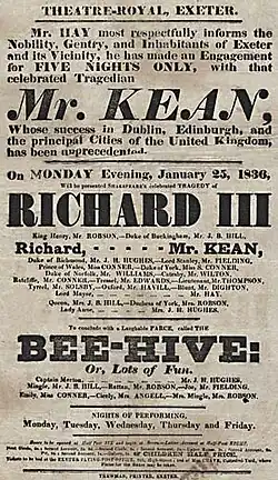 A Theatre Royal, Exeter playbill from 1836, featuring Charles Kean in a performance of Richard III