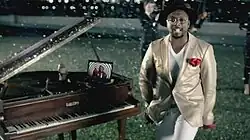 will.i.am and his grand piano on the South Bank accompanied by a laptop, displaying shots of the night club.