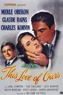 This Love of Ours is a 1945 American drama film directed by William Dieterle and starring Merle Oberon, Maris Wrixon, Claude Rains, Charles Korvin and Carl Esmond. The film's composer, Hans J. Salter, was nominated for an Academy Award for Best Original Score in 1946. This drama from Universal Pictures was later remade as Never Say Goodbye (1956) and the French television film Comme avant, mieux qu'avant (1972).