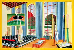 Thomas Huber's painting reveals an ironic and imaginary world. His work stages a complex process of symbolisation that resorts to sophisticated techniques of representation: systematic mise en abîme, co-presence of different temporalities or apparently contradictory elements, in illusionist spaces, between classical and utopian architecture. His work fundamentally questions the possibility of representation.