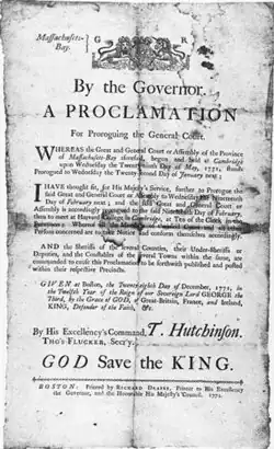 A proclamation issued by Hutchinson in 1771