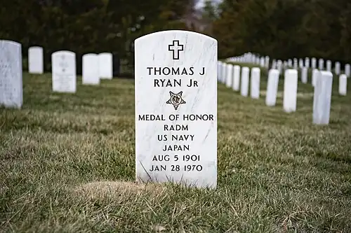 Ryan went on to reach the rank of rear admiral. He died on January 28, 1970, and is buried at Arlington National Cemetery, in Arlington, Virginia.[6]