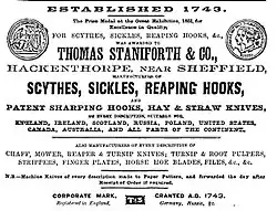 Thomas Staniforth & Co. was a sickle, scythe and tool smiths based in Hackenthorpe, Sheffield, England. The company was founded by Thomas Staniforth in 1743 and operated out of workshops located on Main Street, Hackenthorpe until it was closed during the 1980s and its assets incorporated into Spear & Jackson. The company was known for its Severquick brand of gardening tools.[1]
