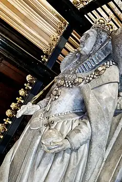 Tomb effigy of Elizabeth I in Westminster Abbey, with the Three Brothers on her chest