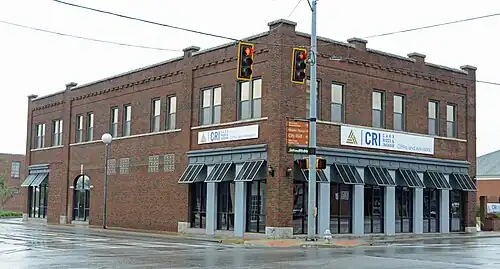 The amendment in 1994 also recognized contributing building status for the Bowen Building, an Art Deco building built c. 1900 but renovated extensively in 1937 after a fire, which is located at the southwest corner of Third Street and South Main Street. In 1994, the corner tenant in the building was a drug store, and the other portion was a Christian bookstore.[3]