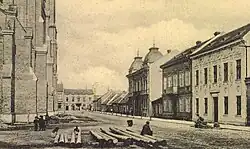 The construction of the Millennium Church (1896–1901) on Piața Romanilor necessitated a route change in the Fabric district three years before electrification. To clear the construction site, the tramway was rerouted along the northern and eastern sides of the square, extending the route slightly and relocating the passing loop to the eastern side.[10]