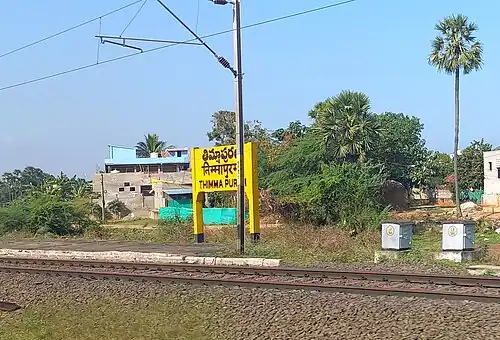 Timmapuram railway station (station code:TMPM[2]), is an Indian Railways station in Thimmapuram, a village in East Godavari district of Andhra Pradesh. It lies on the Vijayawada–Chennai section and is administered under Vijayawada railway division of South Central Railway zone. Six trains halt in this station every day.