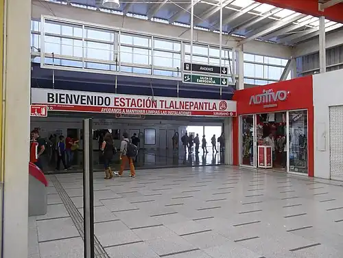 Tlalnepantla is a commuter railway station serving the Ferrocarril Suburbano, a suburban rail that connects the State of Mexico with Mexico City. The station is located in the municipality of Tlalnepantla, State of Mexico, north of Mexico City.[1]