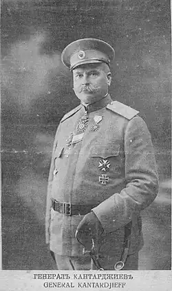 On August 27, 1916, Romania declares war on Austria-Hungary, for its part, Bulgaria, as an ally, declares war on Romania on September 1, 1916. With the units it collected, Kantardzhiev formed the right wing of the 3rd Army which later became the basis of the newly formed Combined Division. Under his command, the division conducted multiple military operations at the mouth of the Danube. It became famous for the release of Dobrich from Romanian occupation.[3] Following the surrender of Romania in 1917, him and his unit were stationed on the Macedonian Front.