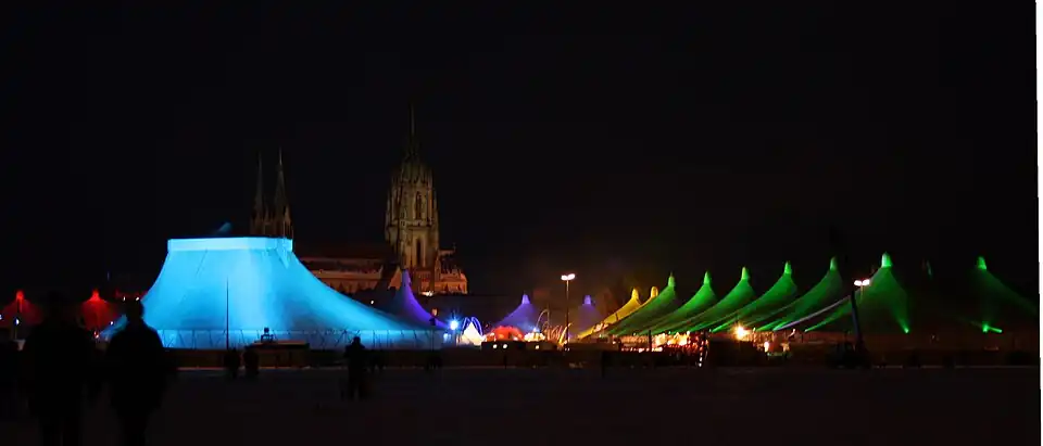 The Tollwood Festival is a festival which takes place semi-annually in the Olympiapark (summer) or on the Theresienwiese (winter) in Munich.