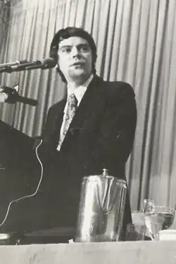 LID and SDS split in 1965, when SDS voted to remove from its constitution the "exclusion clause" that prohibited membership by communists, against Kahn's arguments.[37][38] The SDS exclusion clause had barred "advocates of or apologists for" "totalitarianism".[39] The clause's removal effectively invited "disciplined cadre" to attempt to "take over or paralyze" SDS, as had occurred to mass organizations in the thirties.[40] Afterward, Marxism Leninism, particularly the Progressive Labor Party, helped to write "the death sentence" for SDS.[40][41][42][43] Nonetheless Kahn continued to argue with SDS leaders about the need for accountable leadership,[44] about tactics, and about strategy.[30] In 1966, Kahn attended the Illinois Convention of SDS, where his forceful arguments and delivery overwhelmed and were resented by the other activists;[30] Kahn was then 28 years old.
