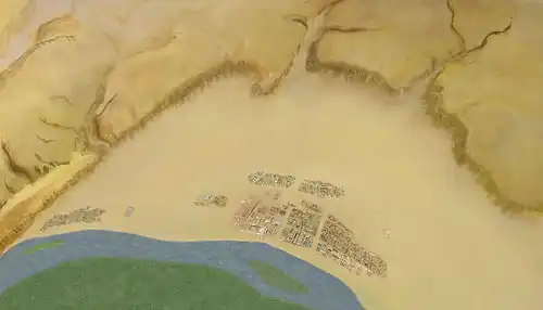 The southern tombs are located in a series of low bluffs south and east of the main city. Associated with these tombs, a recently discovered workers cemetery has been found.[3]