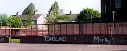 Tongland is a local nickname for the area of Calton, Glasgow controlled in the 1960s by a violent Scottish teenage gang called the Real Calton Tongs. The Tongs financed themselves using a protection racket, levying money on shops within their territory, and they marked that territory out in graffiti with their slogan "Tongs Ya Bass".[1]