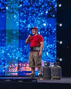 Farrugia started his performing strongman career during the 2010s. At the beginning of his career Farrugia began performing at a number of outdoor venues around Malta and Gozo, usually at truck shows and car shows. From the beginning of his strongman career Farrugia dedicated his shows to charitable causes.[6] During his performances Farrugia performs a variety of feats,[7] which mainly involve feats of strength.[8] Some of Farrugia's feats involve him lifting cars and pulling heavy vehicles including trucks and buses and lifting large iron skips.[9] Other feats performed by Farrugia involve him bending steel objects, ripping telephone directories and decks of cards in half and lifting gas cylinders with his pinky fingers.[10] In 2016 Farrugia teamed up with a veteran performing strongman called Paul "Mr. Cool" Grima, together they created the strongman team called 'Tony & Cool'.[11][12] In 2022 Farrugia performed on episode 2 of the second season of Malta's Got Talent where he received four yeses from the judges. Farrugia then appeared on episode 7, the judges deliberation phase, where he then qualified for the live semi-final phase. Farrugia performed in the semi-final but failed to reach the final after being eliminated during the televoting phase.[13][14]
