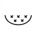 UIAA topo symbols for (clockwise from top left): an overhang, a bolt, a cornice, and a dihedral.[5]