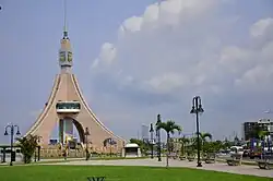 The Torre de la Libertad is a monument located in the city of Bata in the continental region of the African country of Equatorial Guinea. It was inaugurated on October 12 of 2011 in the celebrations for the independence of the nation. It is located on a promenade next to the river. The structure consists of a tower that changes colors at night due to a lighting system.[1] Among other attractions is a revolving restaurant, which is located at the top.[2]