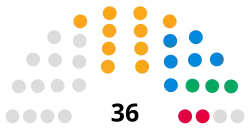 Of the fifteen independent councillors, thirteen form the "Independent Group" and the other two are not aligned to any group.[25] The next election is due in 2027.[26]