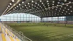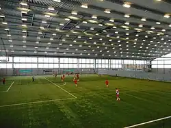 Indoor pitch at its full extent during an amateur match