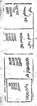 Strip of Mongolian eating papers with Tibetan (left) and Mongolian (right) text