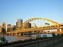 Pittsburgh is a city of bridges: over 2,000 bridges dot the landscape of Allegheny County. The southern entrance to Downtown is through the Fort Pitt Tunnel and then over the Fort Pitt Bridge.[5]