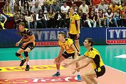 In June 2014, an Italian expert Andrea Anastasi was officially presented as the club's new head coach.[2] Anastasi was a head coach of the Polish national team in 2011–2013, and expressed a desire to work for the club from Gdańsk. Damian Schulz, Mateusz Mika and Wojciech Grzyb signed a contract with the club before the 2014–15 PlusLiga season. The team took 3rd place in the regular season of PlusLiga in which Anastasi's team won 19 and lost 7 matches. On 23 February 2015, Andrea Anastasi signed a new two–year contract, until 2017.[3] Lotos Trefl advanced to the final of the 2014–15 PlusLiga season after winning in the semifinal against the Polish Champion PGE Skra Bełchatów in four matches (3–1). It was the first, historical promotion to the final of the Polish Championship.[4] On 19 April 2015, the team competed in the final of the Polish Cup at Ergo Arena, and has sensationally beaten Asseco Resovia, winning the Cup for the first time in club's history.[5] In the final of the 2014–15 PlusLiga season, Trefl Gdańsk lost to Asseco Resovia in three matches (0–3), and ended the season with silver medals.[6]