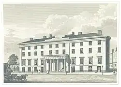 Tremont House was a first-class hotel in Boston designed by Isaiah Rogers. Located on Tremont Street, construction began on July 4, 1828 and the hotel opened on October 16, 1829. For the grand opening, the hotel hosted a banquet for important local guests, charging just $1 per person. The architecture of Tremont House established a reputation for Rogers, who later accepted commissions for many other first-class hotels, including Astor House in New York, Battle House in Mobile, Alabama, Burnet House in Cincinnati, the Charleston Hotel in Charleston, South Carolina, Galt House in Louisville, Kentucky, and the St. Charles Hotel in New Orleans.[4]