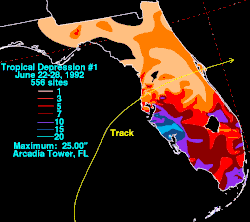 - ^ a b c Rodgers, David K. (June 27, 1992). "Storm drops "100-year' rains". St. Petersburg Times. Retrieved September 11, 2024.