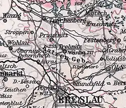 Katzengebirge north of Breslau (Wrocław) on a 1905 German map