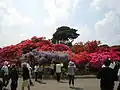 This park was originally a garden for the daimyō of Tatebayashi Domain and was constructed in the early Edo period. It contains about 10,000 azalea plants, some of which are over 800 years old and is a popular sightseeing spot in Gunma Prefecture when the plants bloom from late April to early May.[2] The park formerly contained a greenhouse with exotic plants (closed in 2010) and an aquarium (closed in 2015). The park has a total area of 49,890 square meters. It was designated a National Place of Scenic Beauty in 1934.