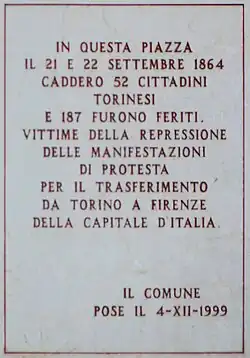 - ^ "Commemorazione dei morti del 21 e 22 settembre 1864". Gazzetta Piemontese. September 22, 1867. Archived from the original on August 15, 2017.