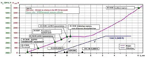 The signal was captured at a distance of approximately 0.4 nautical miles from the runway, far too short for a landing as the aircraft was still at 3,400 ft. By this time, they should have been flying at 400 ft above the ground and already descending. The crew decided to press on, remaining unaware that they were already close with the airport and would fail their landing.[3]: 94–95