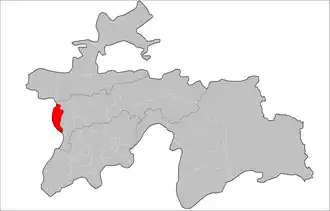 Tursunzoda District (Tajik: Турсунзода, Russian spelling: Tursunzade) is the westernmost district of the Districts of Republican Subordination (RRP), bordering on Uzbekistan in the west and enclosed by Tajikistan's Shahrinav District from the other directions. Its capital is Tursunzoda, called Regar, or "a town on sand", until 1978. Thanks to its warm weather and plentiful irrigation from the local rivers (Shirkent, Karatag, Kofarnihon), Tursunzoda District is a major grower of rice and cotton in Tajikistan. In 2006 it produced 1,400 tons of rice (13% of Tajikistan's rice harvest) and 7,300 tons of cotton (3% of Tajikistan's cotton harvest).[1] It ranks first in the production of these commodities among the districts in RRP. Around 2018, the district was merged into the city of Tursunzoda.