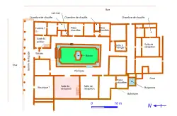 The "Maison au grand péristyle" is the most luxurious building excavated on the Vieux archaeological site. The building has a long history, during which two dwellings were combined to form the "Maison au petit péristyle"[9] and then underwent a new development, during which it was called the "Maison au grand péristyle." It reached its apogee in the late 1st and early 2nd centuries, covering an area of approximately 1,420 m².[3]