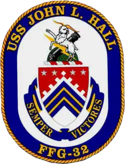 USS John L. Hall (FFG-32), twenty-sixth ship of the Oliver Hazard Perry class of guided-missile frigates, was named for Admiral John L. Hall, Jr. (1891–1978). Her mission is to provide in-depth protection for military and merchant shipping, amphibious task forces, and underway replenishment groups.