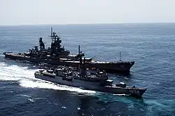 On 9 June 1983, Meyerkord deployed on her sixth WESTPAC with USS New Jersey and other Destroyer Squadron 17 ships. World events forced New Jersey to other commitments and sent Meyerkord to the Indian Ocean to escort the Carl Vinson battle group. Upon completion of the Indian Ocean tour, Meyerkord was tasked with the humanitarian and salvage operations at the Korean Air Lines Flight 007 crash site after it was shot down by the Soviet Union. Meyerkord visited Manila, Singapore, Hong Kong and Sasebo during the deployment. Meyerkord returned to San Diego on 12 December 1983 and began preparation for an overhaul scheduled to start in March 1984 at Long Beach.[4]