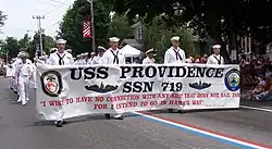 USS Providence (SSN-719), a Los Angeles-class submarine, is the fifth vessel of the United States Navy to be named for Providence, Rhode Island. The contract to build her was awarded to the Electric Boat Division of General Dynamics Corporation in Groton, Connecticut on 16 April 1979 and her keel was laid down on 14 October 1982. She was launched on 4 August 1984 sponsored by Mrs. William F. Smith, and commissioned on 27 July 1985.[3][4]