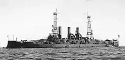 On 30 November, the ship left Boston to begin preparations to join the world cruise of the Great White Fleet.[3] The cruise of the Great White Fleet was conceived as a way to demonstrate American military power, particularly to Japan. Tensions had begun to rise between the United States and Japan after the latter's victory in the Russo-Japanese War in 1905, particularly over racist opposition to Japanese immigration to the United States. The press in both countries began to call for war, and Roosevelt hoped to use the demonstration of naval might to deter Japanese aggression.[4]