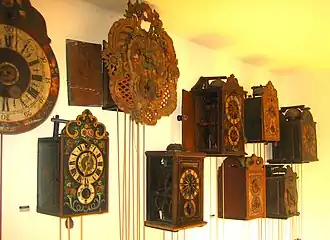 Uhrenmuseum zum Rösli: Several rustic, wooden movement clocks from the Davor, Toggenburg and Entlebuch region of Switzerland, mainly 19th century